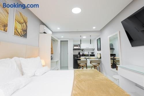 Studio Praia do jardim 1 205A fornece acomodação com Wi-Fi grátis, ar-condicionado e área de praia privativa em Angra dos Reis. Praia do Jardim fica a 3 minutos a pé de distância e Estação Central de Ônibus fica a 1,8 km.