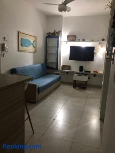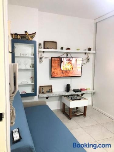 Apto em Santos com AR e Wi-Fi na rua da praia fica em Santos. Shopping Miramar está a 3,3 km de distância, Estação Rodoviária de Santos fica a 7,2 km e Shopping Brisamar fica a 8,2 km.
