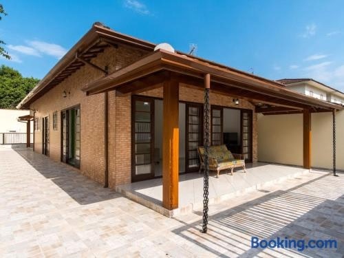 Casa ampla e arejada, com piscina e churrasqueira - 03 dormitórios é uma acomodação em Ubatuba com piscina ao ar livre.