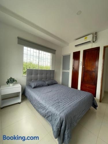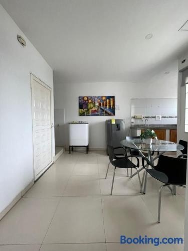 Em Montería, Apartaestudio Full Central Montería oferece acomodação com varanda e Wi-Fi grátis. Este apartamento com ar-condicionado tem 1 quarto separado, uma cozinha compacta completa e 1 banheiro. Você terá à sua disposição TV de tela plana.