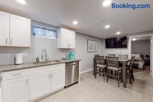 Bright basement unit with large yard and sunroom conta com Wi-Fi grátis e cassino. Estação de trem Union Station fica a 13 km de distância e Centro de convenções do Colorado fica a 14 km.
