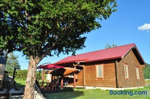 Eco-friendly Log Cottage - be with nature oferece acomodação em Furano com banheira de hidromassagem. Windy Garden está a 9,3 km de distância. A acomodação fornece terraço e estacionamento privativo grátis.