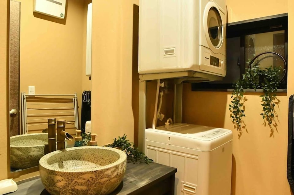 Naniwa, a neighborhood in Osaka, is home to this vacation home. Nipponbashi and Dotonbori are worth checking out if shopping is on the agenda, while those wishing to experience the area's popular attractions can visit Osaka Aquarium Kaiyukan and Universal Studios Japan. Looking to enjoy an event or a game? See what's going on at Kyocera Dome Osaka or Intex Osaka. Located in Osaka, this welcoming vacation home lets you experience it all. Nipponbashi is an easy 9-minute walk away and Tsutenkaku Tower is also a quick 10-minute walk away. Check out other neighborhoods and see more of Osaka by hopping on a metro at either Shin-Imamiya Station, a short 4-minute walk away, or Imamiyaebisu Station, 5 minutes away. Relax on the terrace (enjoy the outdoor furniture!) of this vacation home. When you come inside, connect to the free WiFi or get cozy in front of the LED TV (streaming services available). Climate-controlled air-conditioning and a desk are featured at this 2-bedroom, 1-bathroom rental. Bathroom amenities include a hair dryer, a toilet with electronic bidet, and towels. The kitchen is equipped with an oven, a stovetop, and a refrigerator, as well as an electric kettle, a microwave, and cookware. And you can even travel light because you'll have access to laundry facilities.