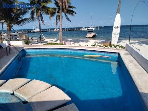 Em Cancún e perto de Playa Mujeres, ON THE BEACH SURFERS SUNRISE HAVEN 1 fornece acomodação com piscina ao ar livre, uma área de praia privativa, jardim, lounge compartilhado e possibilidade de alugar uma bicicleta.