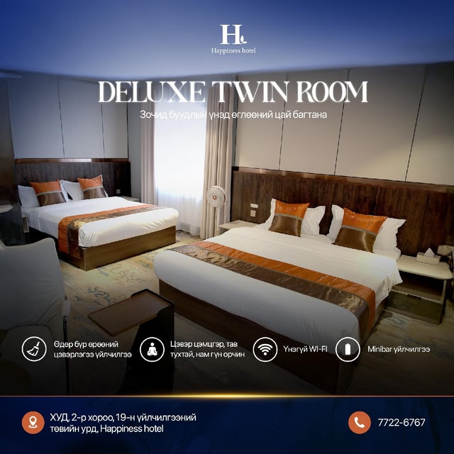 Located in Ulaanbaatar, Happiness Hotel is in the city center. The area's natural beauty can be seen at Terelj National Park and Chinggis Khan Garden, while Bogd Khaan Palace Museum and Hunting Museum are cultural highlights. Looking to enjoy an event or a game while in town? See what's happening at National Sports Stadium or Steppe Arena. Hotel in Ulaanbaatar with free breakfast and a 24-hour front deskThis hotel features a coffee shop/cafe, coffee/tea in a common area, and a 24-hour front desk. Free English breakfast, free WiFi in public areas, and free self parking are also provided. Housekeeping is available on request. Happiness Hotel offers 32 accommodations with complimentary bottled water and slippers. This Ulaanbaatar hotel provides complimentary wireless Internet access, with a speed of 50+ Mbps. Bathrooms include showers, hair dryers, and toothbrushes and toothpaste. Change of towels and change of bedsheets can be requested. Housekeeping is provided on request.
