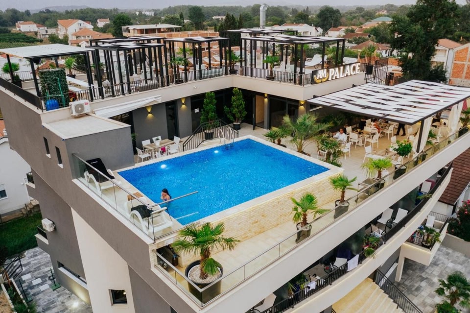 AM Palace fornece acomodação com piscina ao ar livre com funcionamento sazonal, estacionamento privativo grátis, jardim e lounge compartilhado em Ulcinj. Velika Plaza Beach fica a 1,9 km de distância.