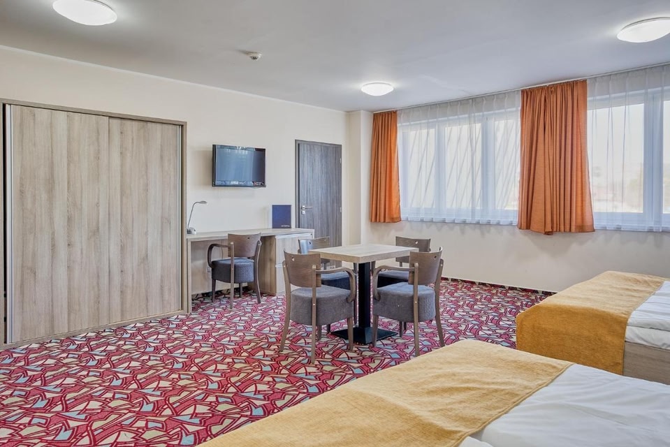 With a stay at Hotel Arena in Chomutov, you'll be within a 15-minute walk of Kamencov Lake Park and Chomutov City Park. This hotel is 0.9 mi (1.4 km) from Letni Stadium and 1 mi (1.7 km) from Chomutov City Tower. Enjoy recreation amenities such as bicycles to rent or take in the view from a terrace. Additional features at this hotel include complimentary wireless internet access, concierge services, and gift shops/newsstands. Satisfy your appetite for dinner at the hotel's restaurant, Restaurant Brasileiro, or stay in and take advantage of the room service (during limited hours). Quench your thirst with your favorite drink at the bar/lounge. A complimentary buffet breakfast is served on weekdays from 6:30 AM to 9:30 AM and on weekends from 7:00 AM to 10:00 AM. Featured amenities include a business center, dry cleaning/laundry services, and a 24-hour front desk. This hotel has 2 meeting rooms available for events. Free self parking is available onsite. Make yourself at home in one of the 96 air-conditioned rooms featuring flat-screen televisions. Complimentary wireless internet access is available to keep you connected. Bathrooms have showers and hair dryers. Conveniences include phones, as well as safes and desks.