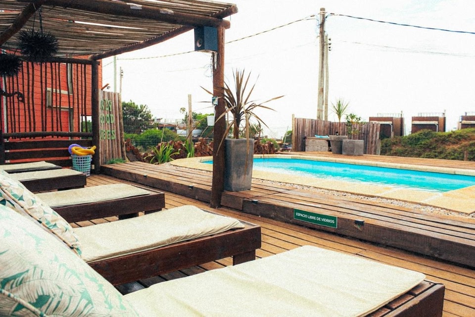Pueblo Arriba Hostel oferece piscina ao ar livre com funcionamento sazonal, jardim, lounge compartilhado e restaurante em Punta Del Diablo. Com bar, a acomodação está localizada a cerca de 8 minutos a pé de Praia Del Rivero.