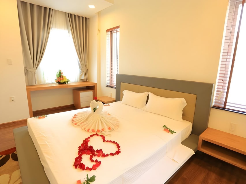 Experience an abundance of unparalleled facilities and features at Ruby Luxury Apartments. Maintain seamless communication using the complimentary Wi-Fi at serviced apartment.Effortlessly arrange transportation to and from the airport using the serviced apartment's airport transfer services.Car hire offerings at the serviced apartment enhance the ease of discovering Nha Trang.For visitors traveling by automobile, complimentary parking is available.During your stay at this fantastic serviced apartment, the attentive front desk personnel can provide you with a range of amenities such as express check-in or check-out and luggage storage. Obtaining passes for the town's top entertainments becomes effortless with serviced apartment's tours.At the serviced apartment, utilize the on-site dry cleaning service and laundry service to maintain your beloved travel attire fresh, allowing you to bring fewer clothes. Craving relaxation? Make the most of your stay at the Ruby Luxury Apartments with convenient amenities like room service and daily housekeeping at your disposal. For visitors wishing to smoke, designated smoking zones can be found. At Ruby Luxury Apartments, every guestroom is provided with convenient amenities and fittings to ensure a comfortable stay. Enhance your experience at serviced apartment with the knowledge that certain rooms are equipped with blackout curtains and air conditioning for your convenience. A few accommodations within Ruby Luxury Apartments offer unique design elements such as a balcony or terrace.Certain rooms offer in-room amusement features such as the cable TV for your enjoyment. In select rooms within the serviced apartment, a refrigerator, bottled water and mini bar is available to cater to your requirements when desired.It is worth noting that certain guest bathrooms feature a hair dryer and toiletries for your convenience. Enjoy an entertaining evening with your fellow travelers at the serviced apartment's bar. During your stay at serviced apartment, an array of engaging activities and amenities guarantees a delightful experience. Conclude your holiday experience perfectly by visiting sauna before you depart.